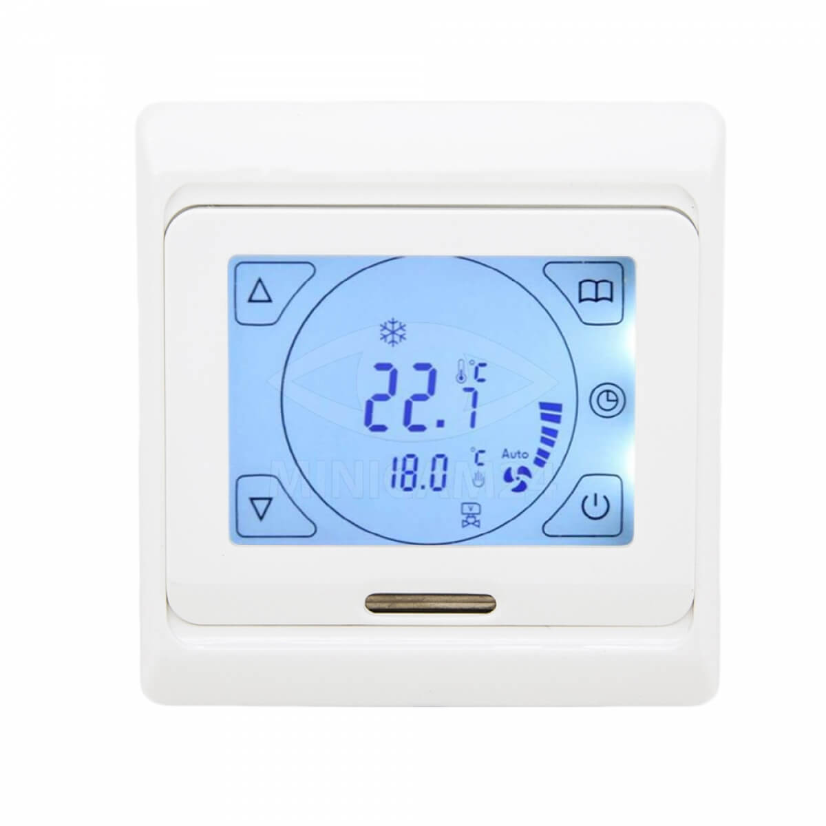 Программируемый терморегулятор RТС 91.716 с сенсорным ЖК дисплеем и двумя датчиками – это устройство для регулирования и контроля температуры в заданных границах. Применяется в обогревательных системах и системах теплого пола. Способен определять температуру с высокой точностью без участия человека. Информация о текущих параметрах, дата и время выводятся на экран, оснащенный подсветкой и сенсорным управлением. Поддерживает три режима управления – ручной, авто и комфортный. Есть функция блокировки кнопок.